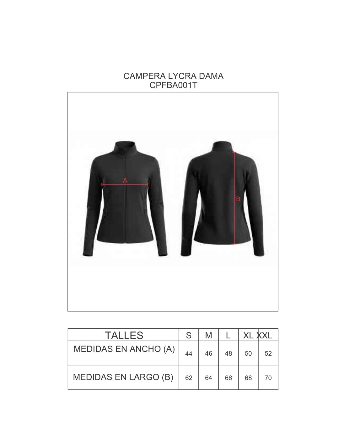 La campera lycra para dama está diseñada para acompañar entrenamientos y actividades deportivas en climas frescos. Su corte entallado se adapta al cuerpo, brindando un calce cómodo que no interfiere en el movimiento.