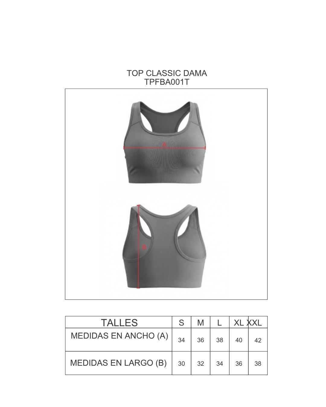 El top classic para dama está diseñado para brindar soporte, ajuste y comodidad durante entrenamientos de media y alta intensidad. Confeccionado en supplex pesado, ofrece una excelente contención y calce firme que acompaña el movimiento sin desplazarse.